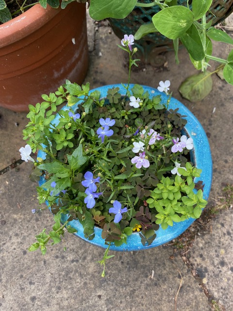But in the meantime, here’s me doing a reading of one of my flashes that I just recorded especially for this blog. It’s not from Hostile Environments as I explain on the vid, but as I’m going to post every day this week, thought I’d release some of my stranger flash fictions into the wild too. Here’s the link to where it appears online as text ,if you prefer https://theshortstory.co.uk/words-and-sayings-by-jan-kaneen/ and below is my recording which carries a trigger warning with ref to toxic societal gender assumptions and uses sayings that would cause offence in their usual contexts, but hopefully not in this one, though they might well still be shocking. Reet that’s it for Monday. See you tomorrow when I will talk about the new project I have started to pursue – applying to York St John to do a creative writing PhD. Until tomorrow then. Oh yes and If you were wondering about the pot of flowers at the start of this post. Going to do a ‘flower of the day’ each day here too. I love growing flowers and veggies as well as stories and today I’m celebrating teeny lobelia and how though they might be small, they bring humongous joy.