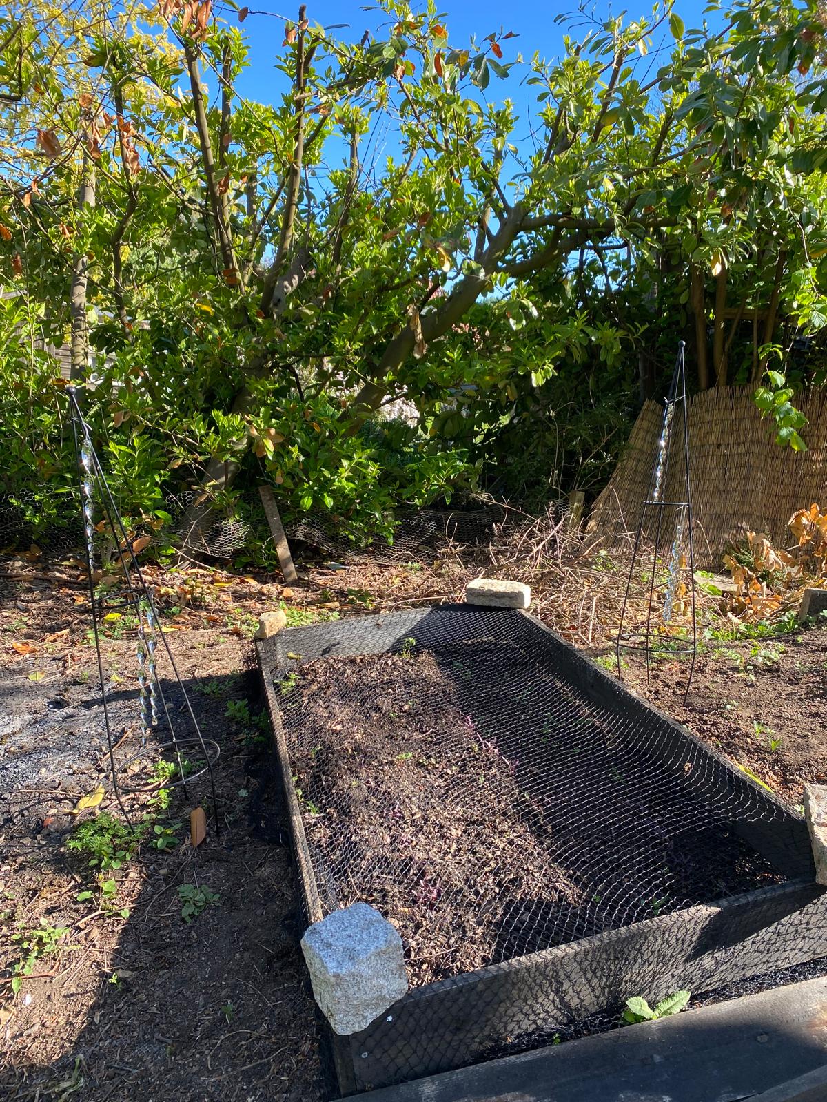 It has taken a fair bit of research accessing the seeds but hey I’m a research student now, so have been using my newly learned transferrable (it turns out) skills to get six strangely named new (to us) veggies that used to be the mainstay of potager’s gardens in the UK for hundreds of years before industrialisation. Sadly there is one I haven’t been able to source yet but I will keep on trying because I love the idea that we’re bringing something old (and to us, new) back to life (hopefully). Also, having lots of different crops that reseed and look after themselves seems like a great way forward and much more suitable to a potager’s garden like ours, so much better than growing line after line of thirsty, modified plants like commercial farmers do, that need constant watering and weeding and replacing every year. Hope this new system will mean less gluts and dearths, and that having small amounts of different veggies that come up in sequence will add interesting variation to our diets. I’ll document what all the new seeds/plants will be in my next blog, and also where I bought them from, so anyone who’s interested can try growing some too. (you can see three on the photo at the start of this blog). And here’s a couple of photos of the prepped soil ready for all the lovely seeds to take up residence.