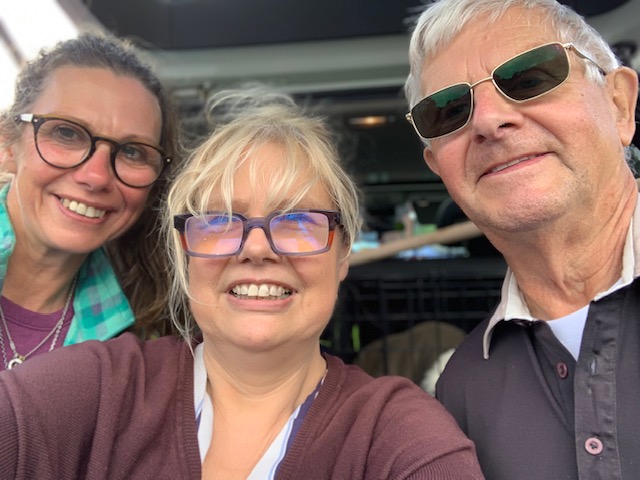 As I sit here tapping out these words in my safe, writing place, the sun has burned away the last of this morning’s haze and the horse chestnut and copper beech trees are standing clear and bright in all their autumnal technicolour whether I want to see them or not. I know that’s a metaphor for summat or another, so I’m going to drink it all in as I post this photo of me, Dad and R Les, who I love through the mist and back. I took it when I went home to Bolton a couple of weeks ago. I love my Bolton family and I’m so grateful for how they received the publication of The Naming of Bones, my memoir-in-flash that features them all. For anyone who’s read The Naming of Bones, this was a bit of a Waltzers moment for me. I’m posting it here as a happy happy memory that I can gaze on again and again and again and again, whether I’m in full-on mist mode, or sky-bright sunshine.